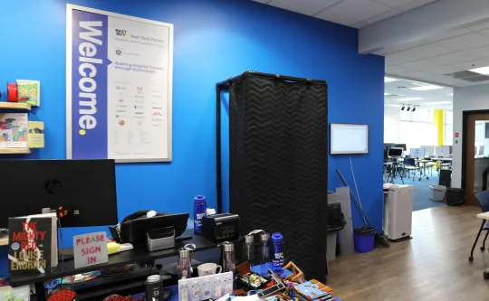 The Best Buy Teen Tech Center, located on the 2nd floor of the Republic Bank Foundation YMCA, is a free, inclusive space where youth ages 12–18 can explore their interests in technology, design, music, and media—no YMCA membership required.